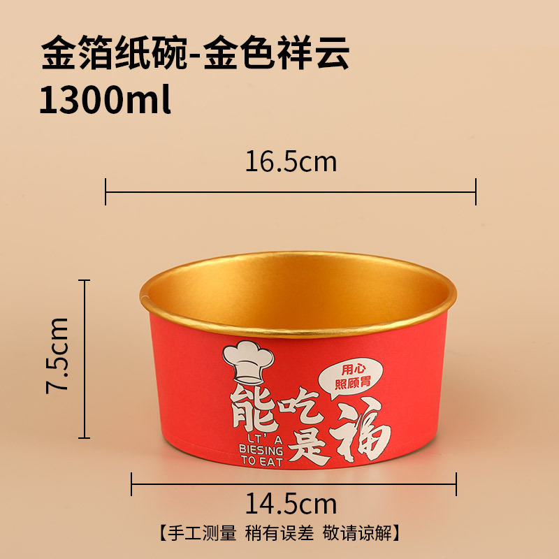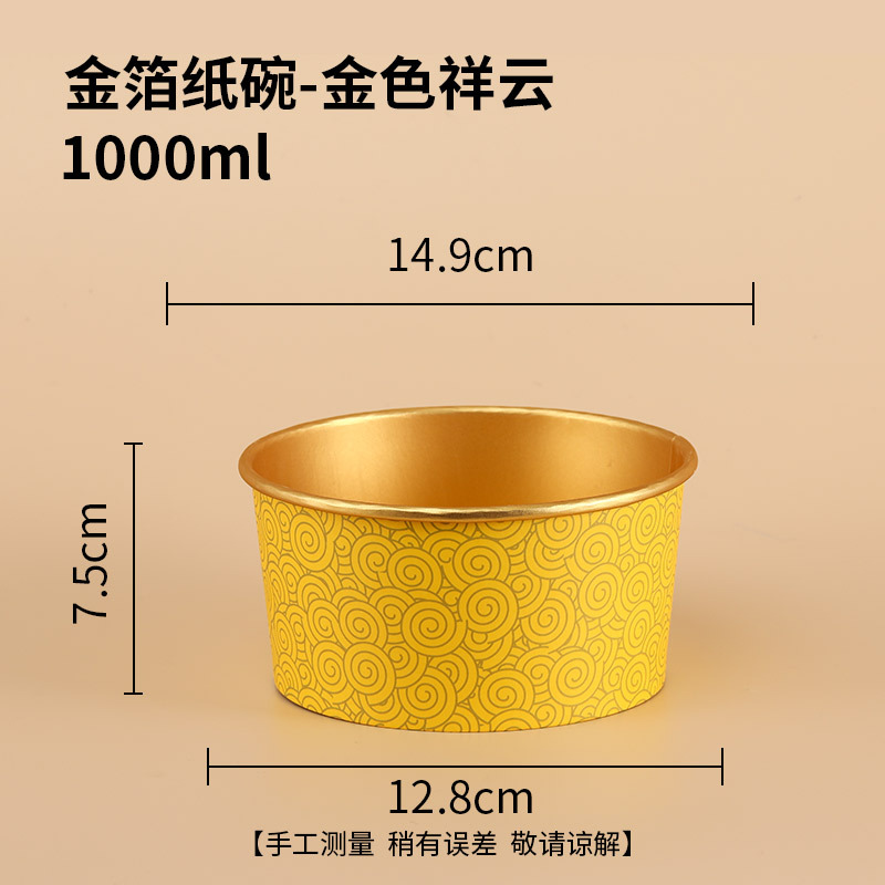 - 規格:【600隻裝】1300ml祥雲金箔紙碗-蓋另拍