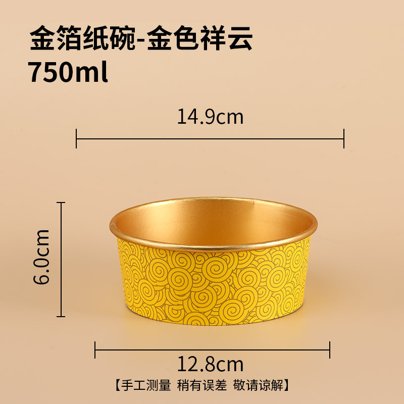 - 規格:【600隻裝】750ml祥雲金箔紙碗-蓋另拍