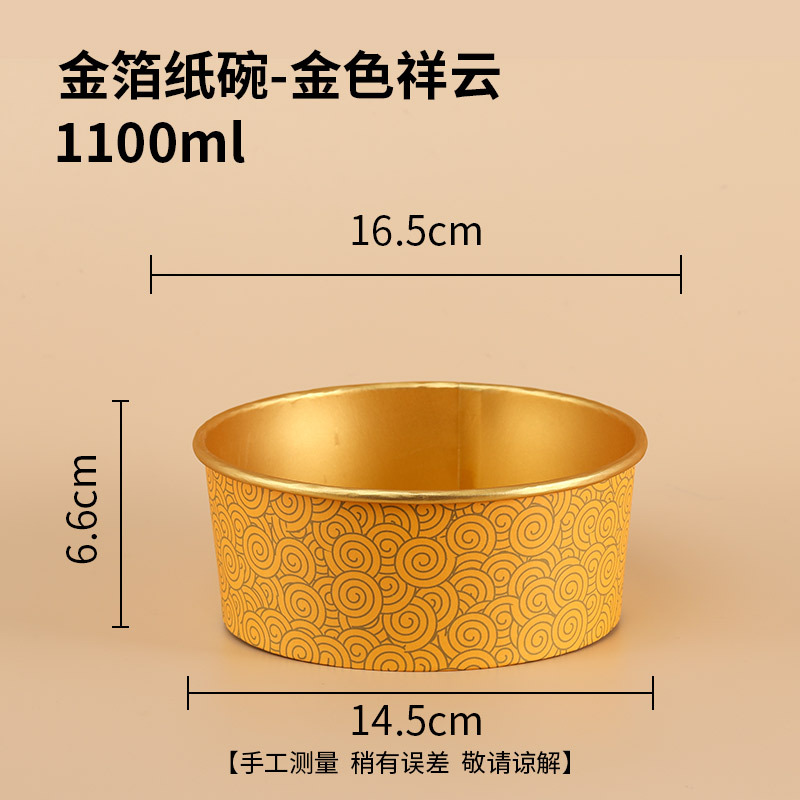 - 規格:【600隻裝】1100ml祥雲金箔紙碗-蓋另拍