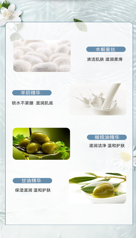 - 原料成分:甘油、月桂酸、水解蠶絲、羊奶提取液、橄欖油