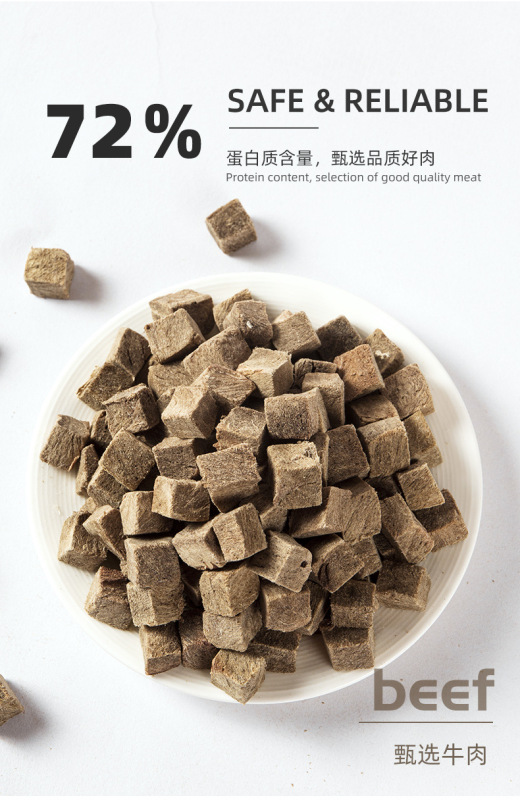 - Taste: Freeze dried beef chunks