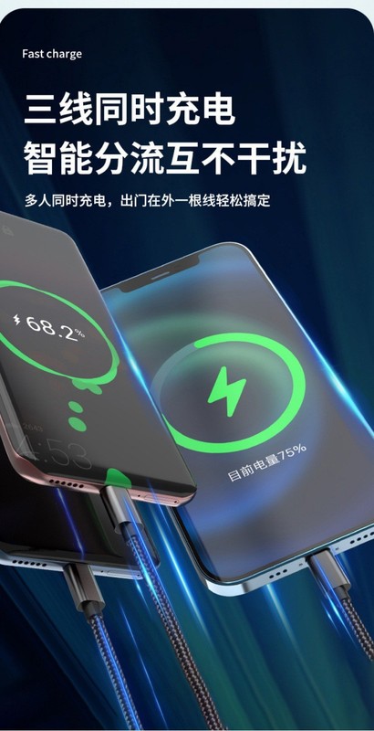 - Model: Fast Charging Braided 1-to-3 (boxed) Green