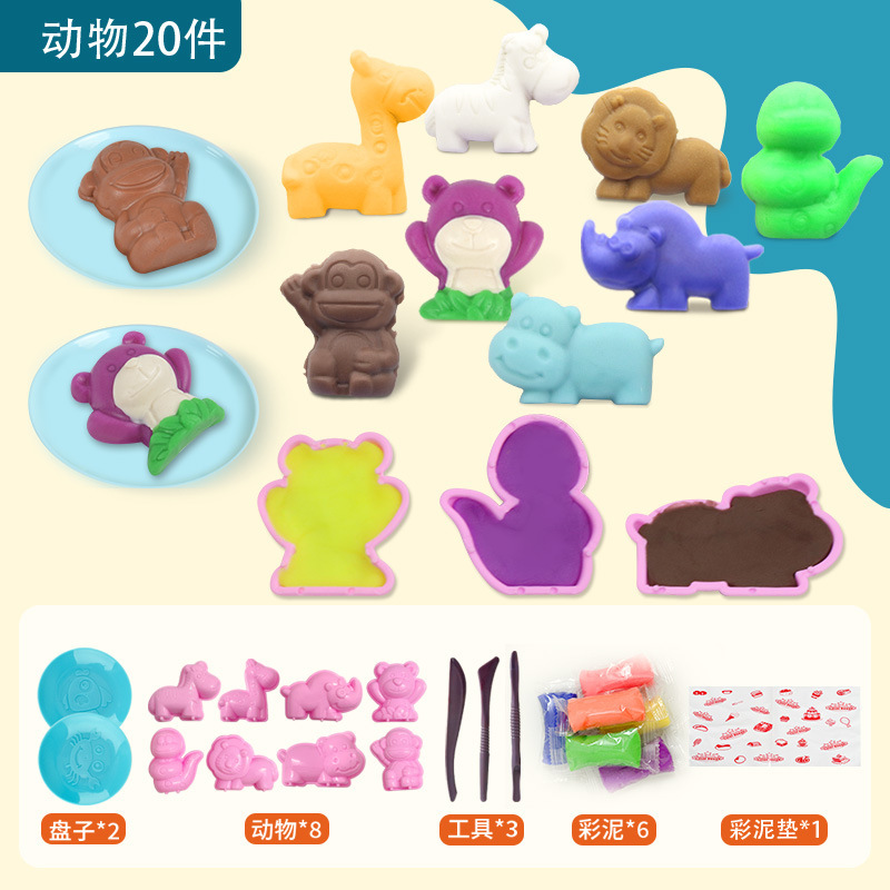 - 規格:動物20件套【含6彩泥】
