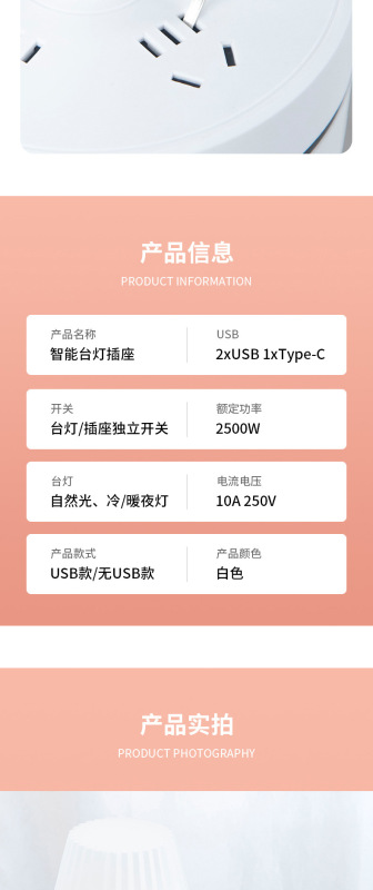 - Specification Model: Storage Desk Lamp Socket 20-Slot without USB* with 2.8m Cord