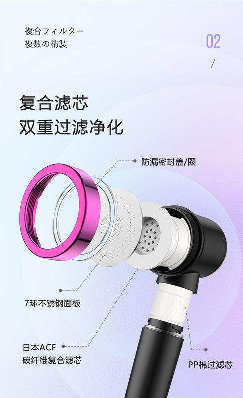- 規格:專利款【黑色粉圈】日式淨水花灑(內含頭部濾芯)
