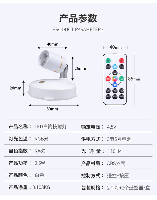 - Power: TL005-RGB battery model (1 light 1 remote control)