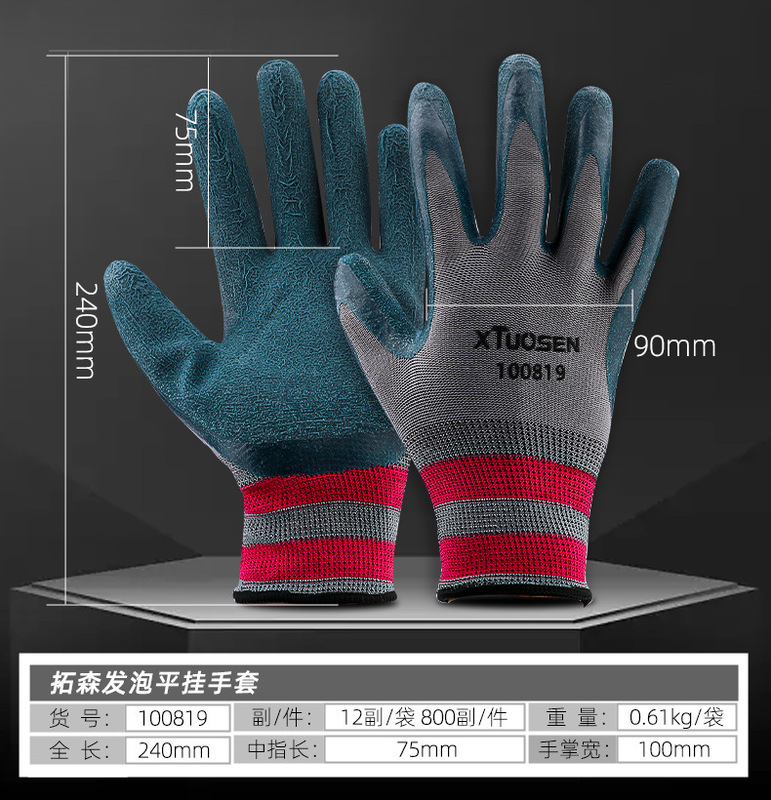 - Model Specifications: 100819, Foam Flat-Hanging Gloves, 12 pairs/bag, 800 pairs/box, 0.61kg/bag