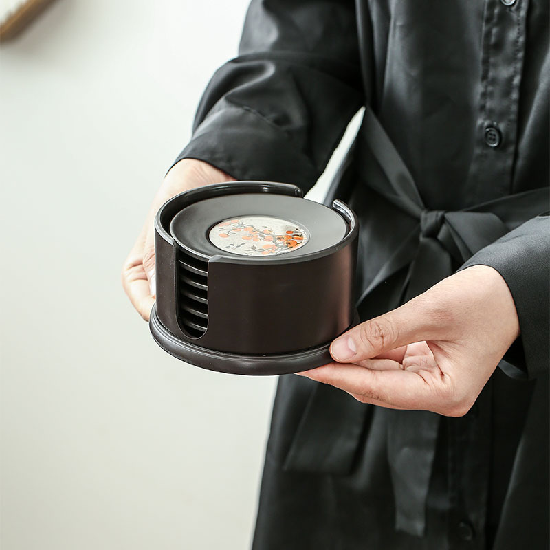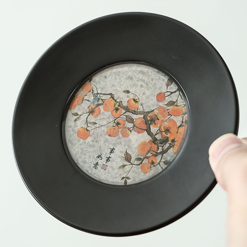 - 規格:電木圓形杯墊柿柿如意6個裝帶框