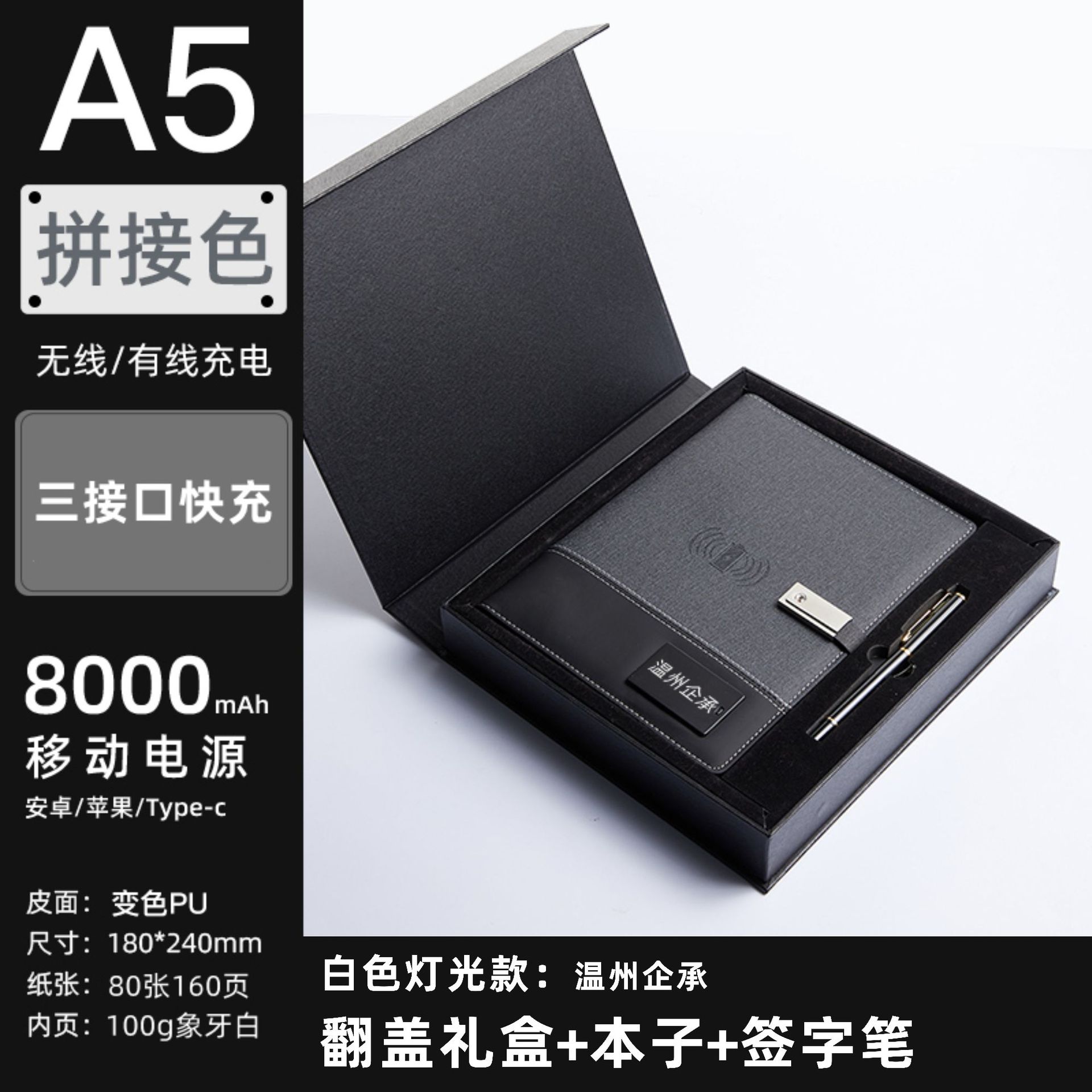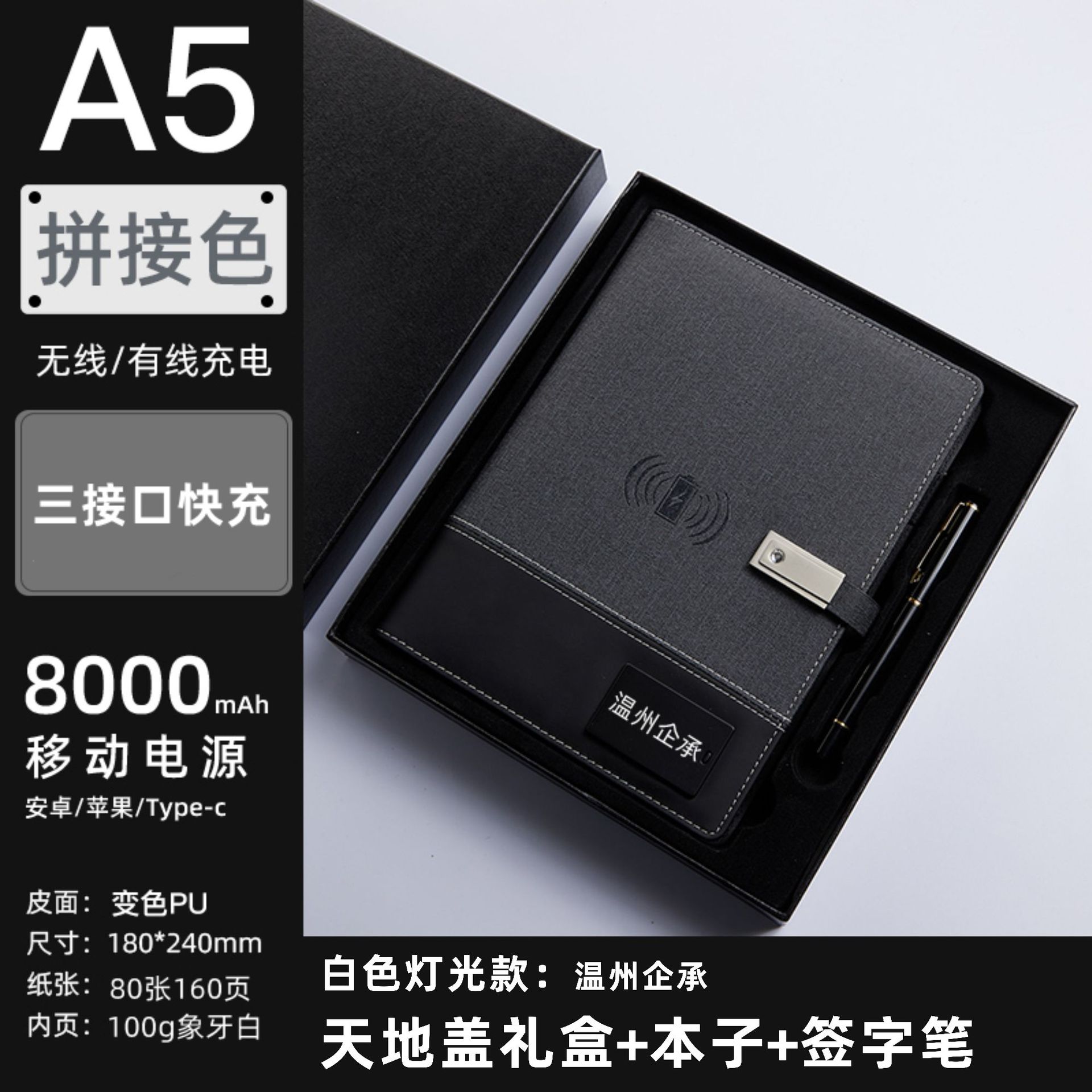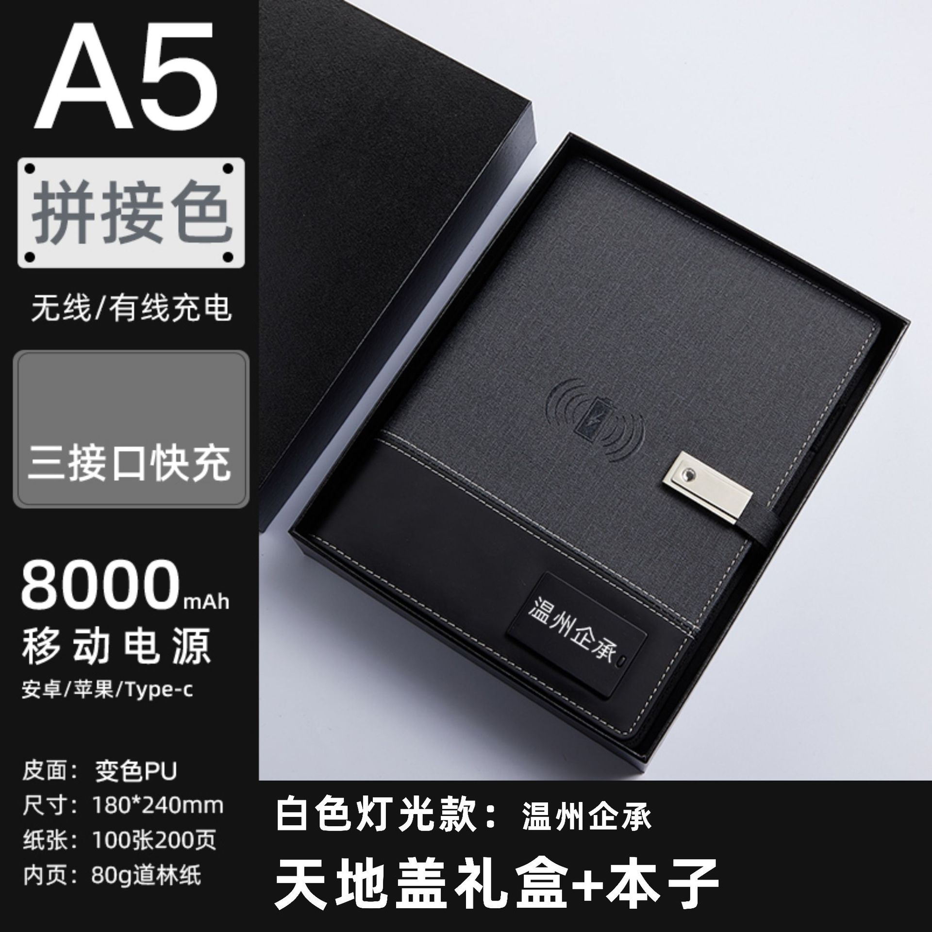 - Specification: Notebook 8000mAh Power Bank (Wireless Charging Supported) + 16GB USB Flash Drive