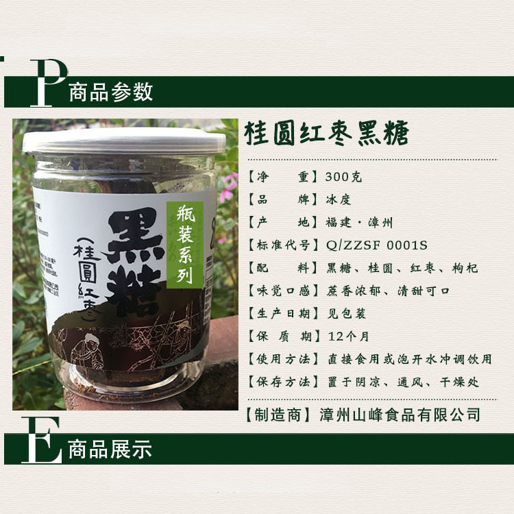 - Packaging Specification: Longan Jujube Black Sugar (Bottle 300g)