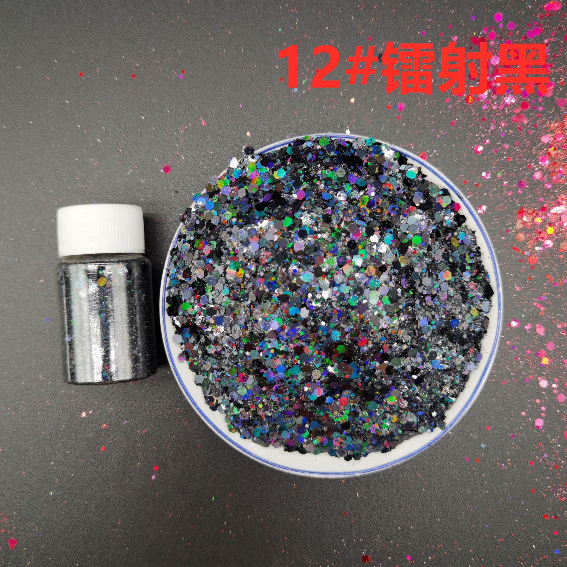 - Specification: 11# Laser Rose Red (Dry powder no adhesive)