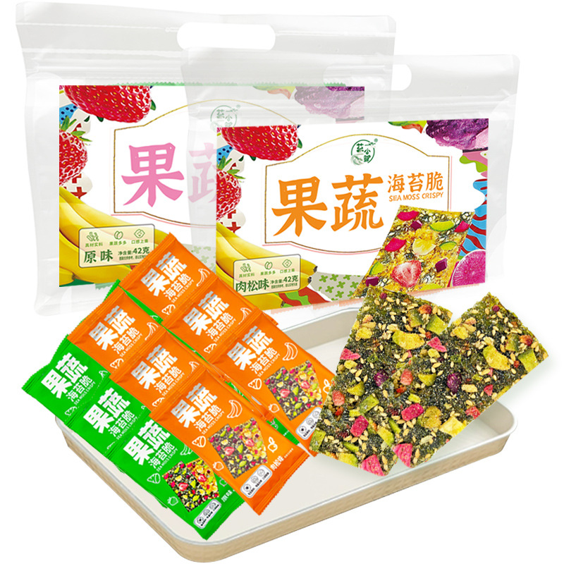 - Ingredients and配料: Dry nori, solid composite seasoning, banana crisps, green radish slices, red radish slices, purple sweet potato slices, strawberry pieces, meat floss, sesame seeds, flax seeds, etc.