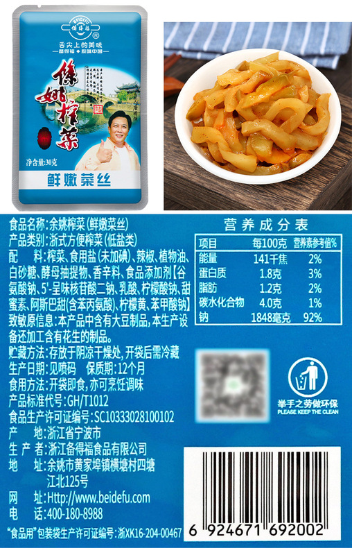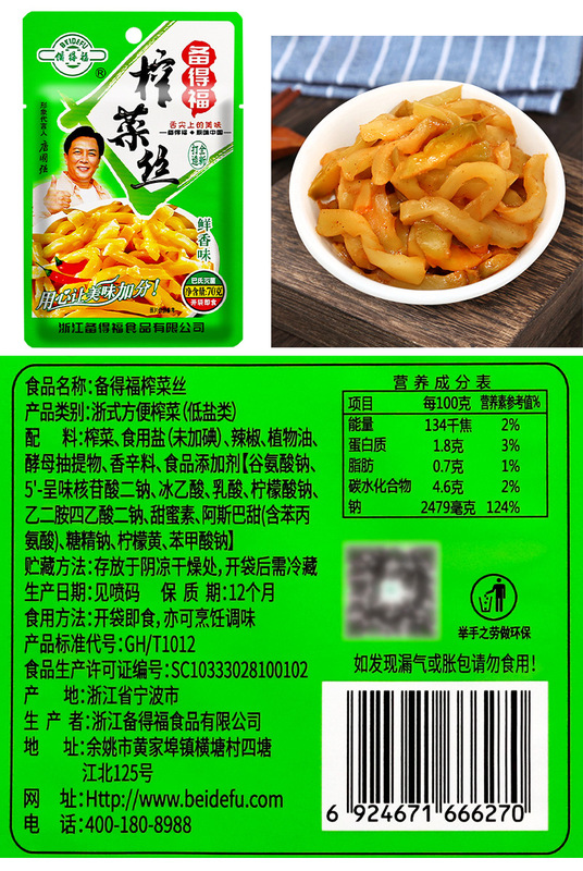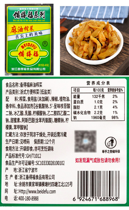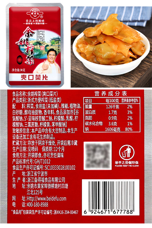 - Ingredients: Pickled mustard greens, edible salt, chili peppers, vegetable oil, etc.