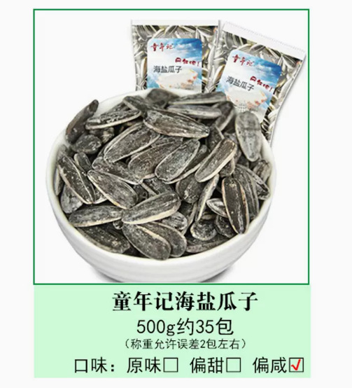 - 包裝規格:海鹽瓜子1斤【約35小包