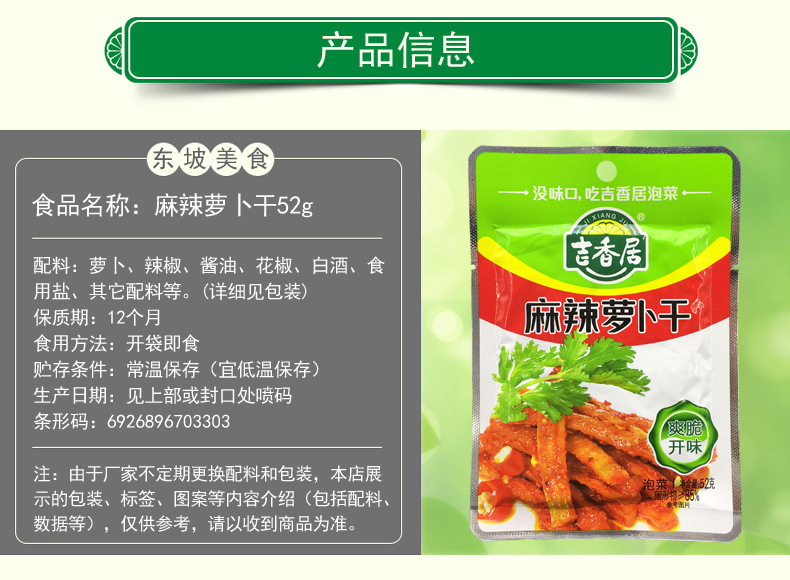 - Packaging Specification: Spicy Pickled Mustard Greens 52g