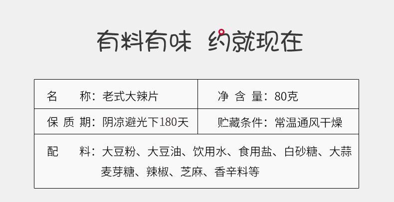 - Packaging specifications: Old-style large spicy strips 80g/pack