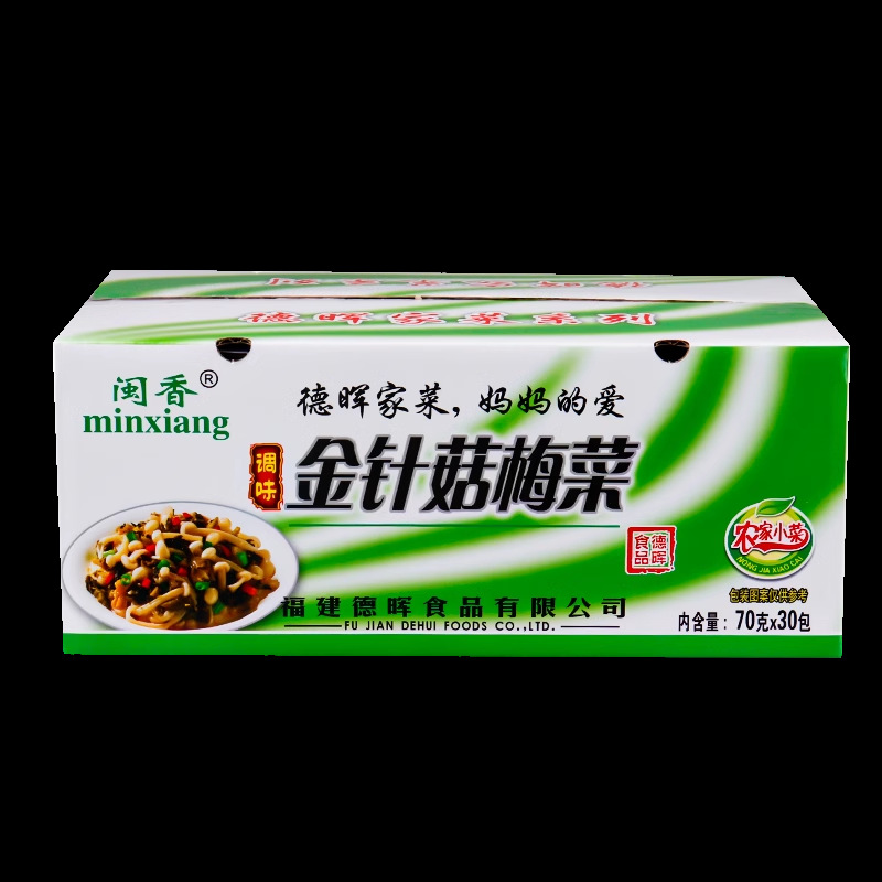 - Packaging Specification: 70g Enoki Mushrooms and Mustard Greens (Box)