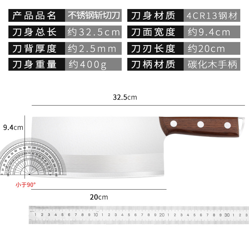 - Specification: Carbonized Handle Brushed Chopping Knife