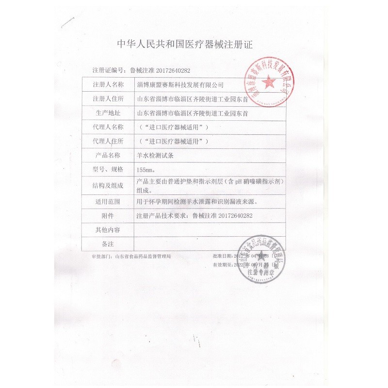 - Medicinal Device Registration Number: Lu Xie Zhu Zhun 20152140116