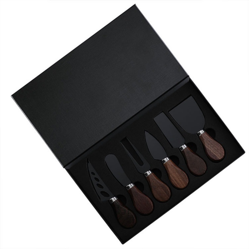盒裝芝士奶酪刀黑胡桃木柄小叉子可愛西餐野餐便攜餐具水果叉套裝