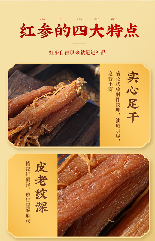 - Packaging Specification: 1 Jin full须低糖红参 20-25 branches