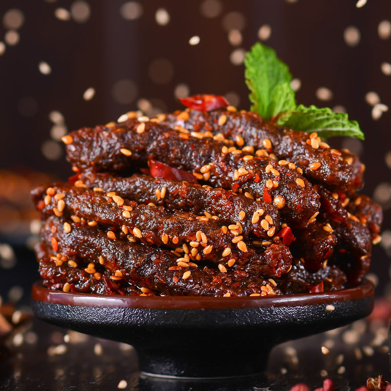 - Ingredients and materials: Beef, vegetable oil, soy protein isolate, white sugar, glucose syrup, sesame, edible salt, chili, Sichuan pepper, spices, edible flavorings