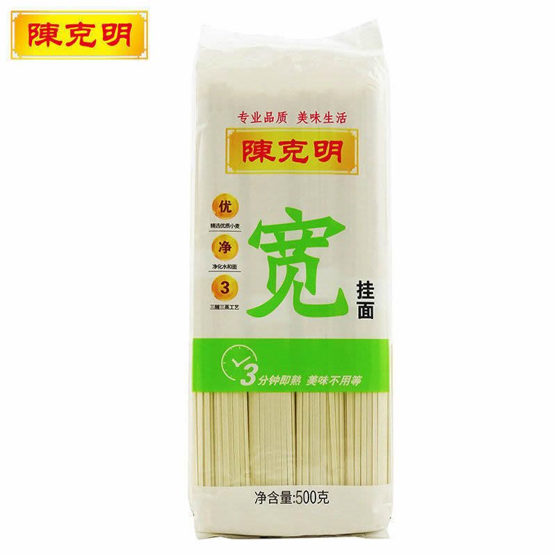 - 包裝規格:陳克明寬掛麵500g*1包