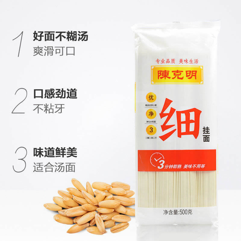 - 包裝規格:陳克明細掛麵500g*1包