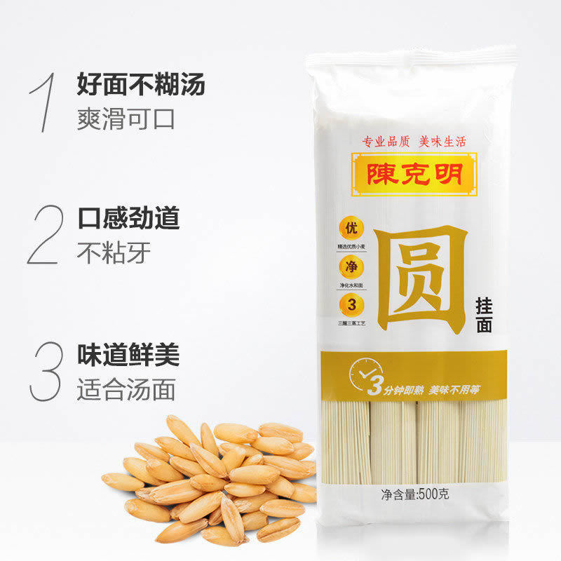 - 包裝規格:陳克明圓掛麵500g*1包