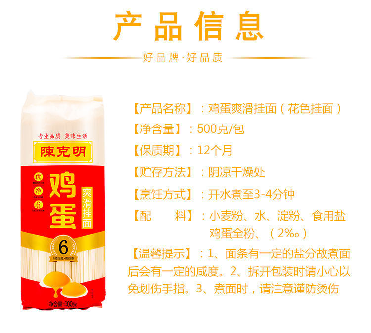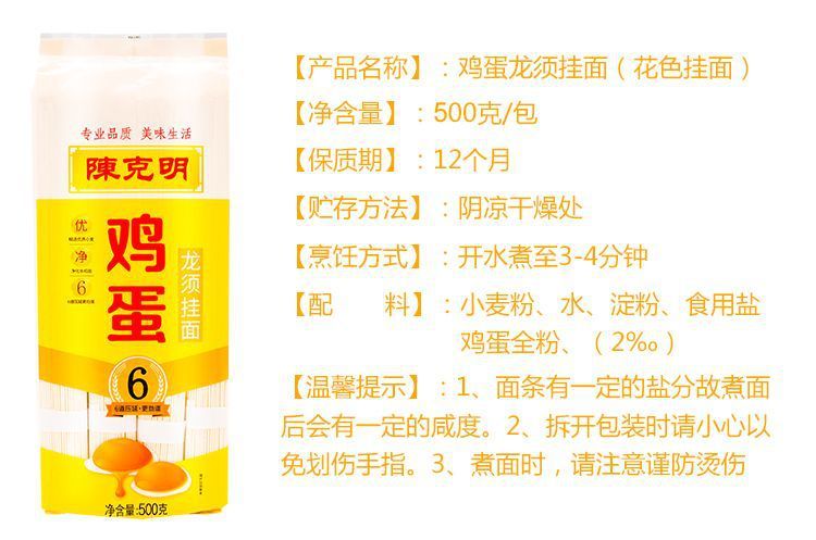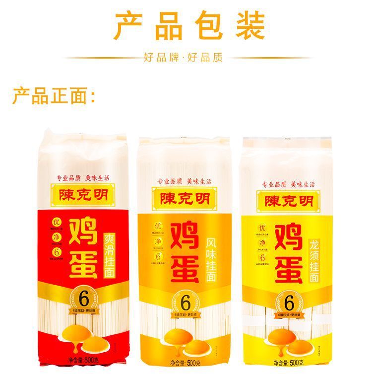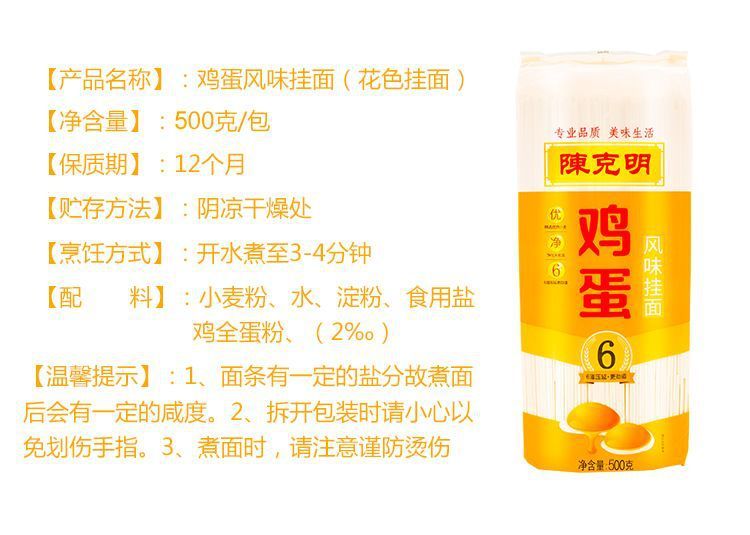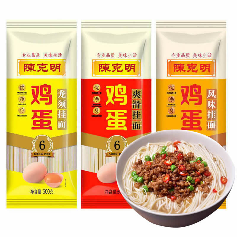 - Packaging Specification: Chen Keming Egg Flavor Noodles (Flat Thin) 500g*1 Pack