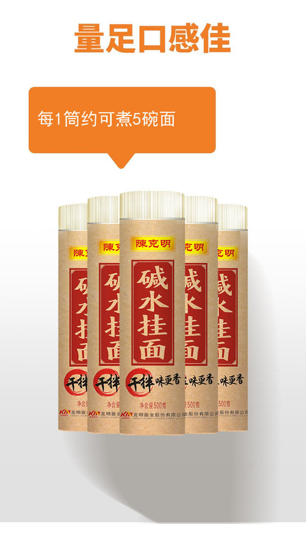 - 包裝規格:陳克明鹼水掛麵500g*1筒