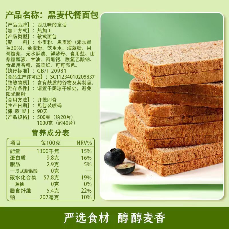 - 包裝規格:500g/10包20片黑麥全麥麵包