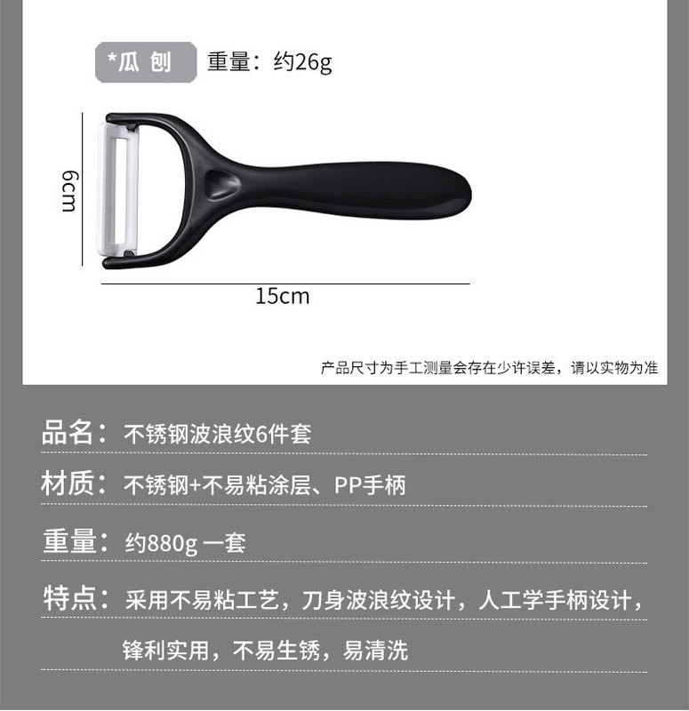 - Specification: 1.2mm black wave pattern 6-piece set knife -拖拉盒