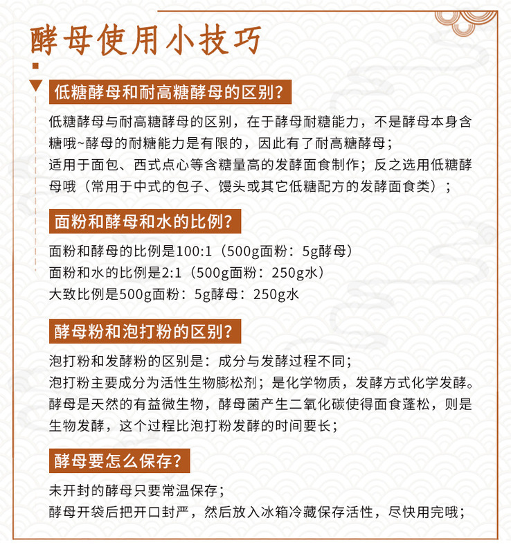 - Packaging specification: Dry yeast 5g*10 (low sugar)