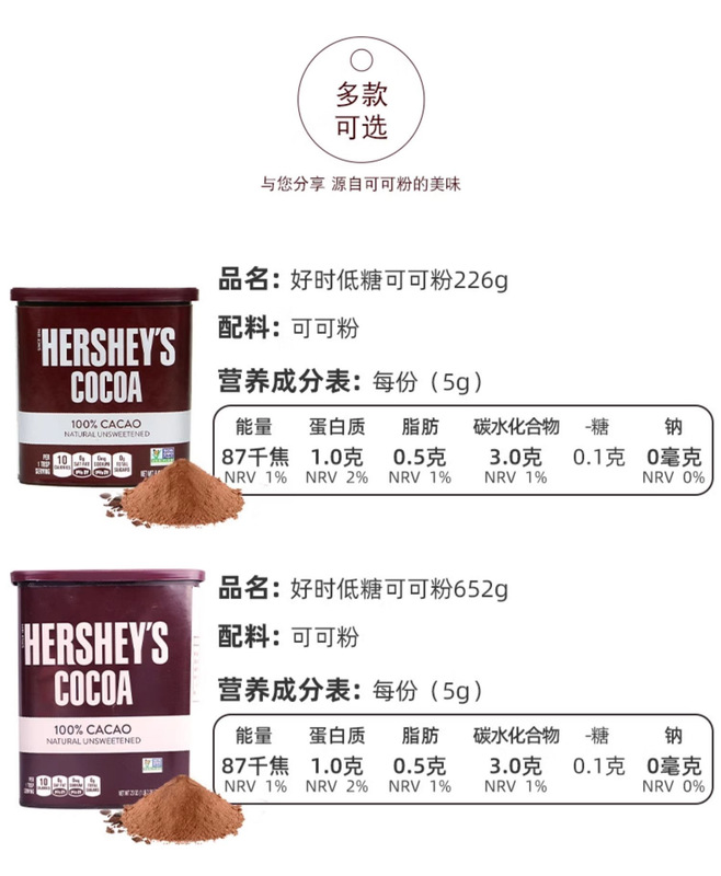 - 包裝規格:好時可可粉(低糖)652g