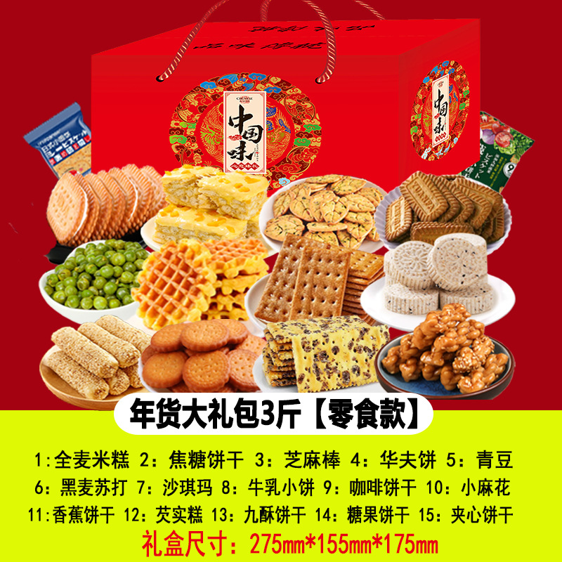 - 包裝規格:中國味*年貨禮盒3斤【零食款】