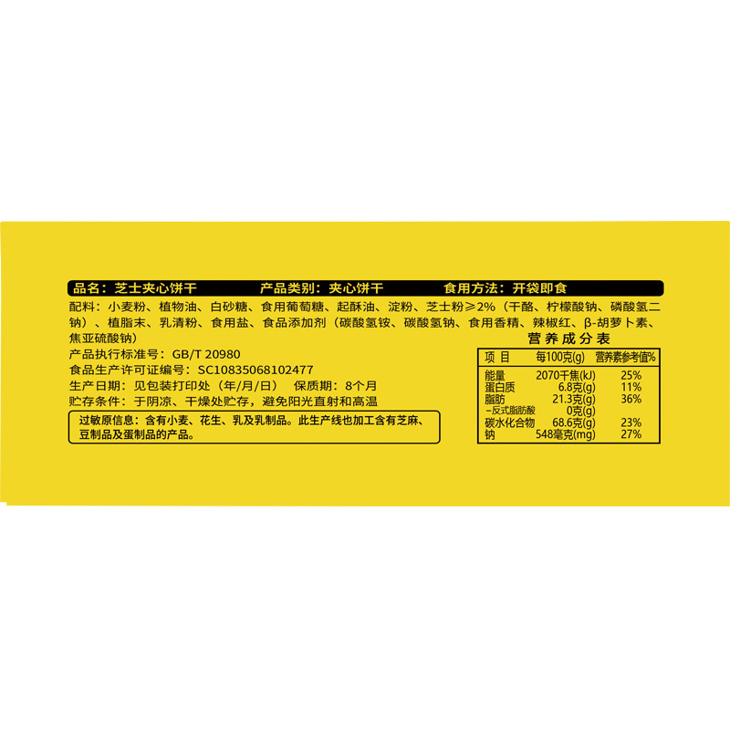 - Packaging Specification: 108g of Cheese Filled Biscuits * 3 Bags [Elegant Bag Packaging]
