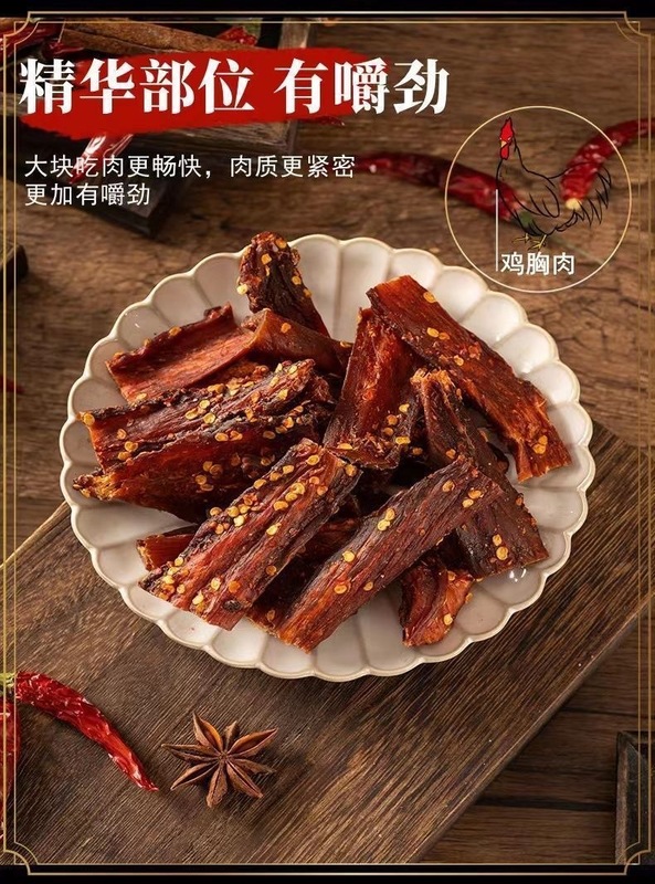- 原料和配料:雞肉海藻糖味精香辛料辣椒麵