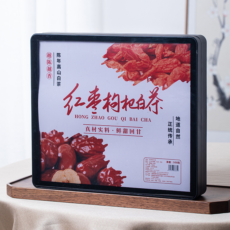 - 包裝規格:紅棗枸杞白茶500克禮盒裝
