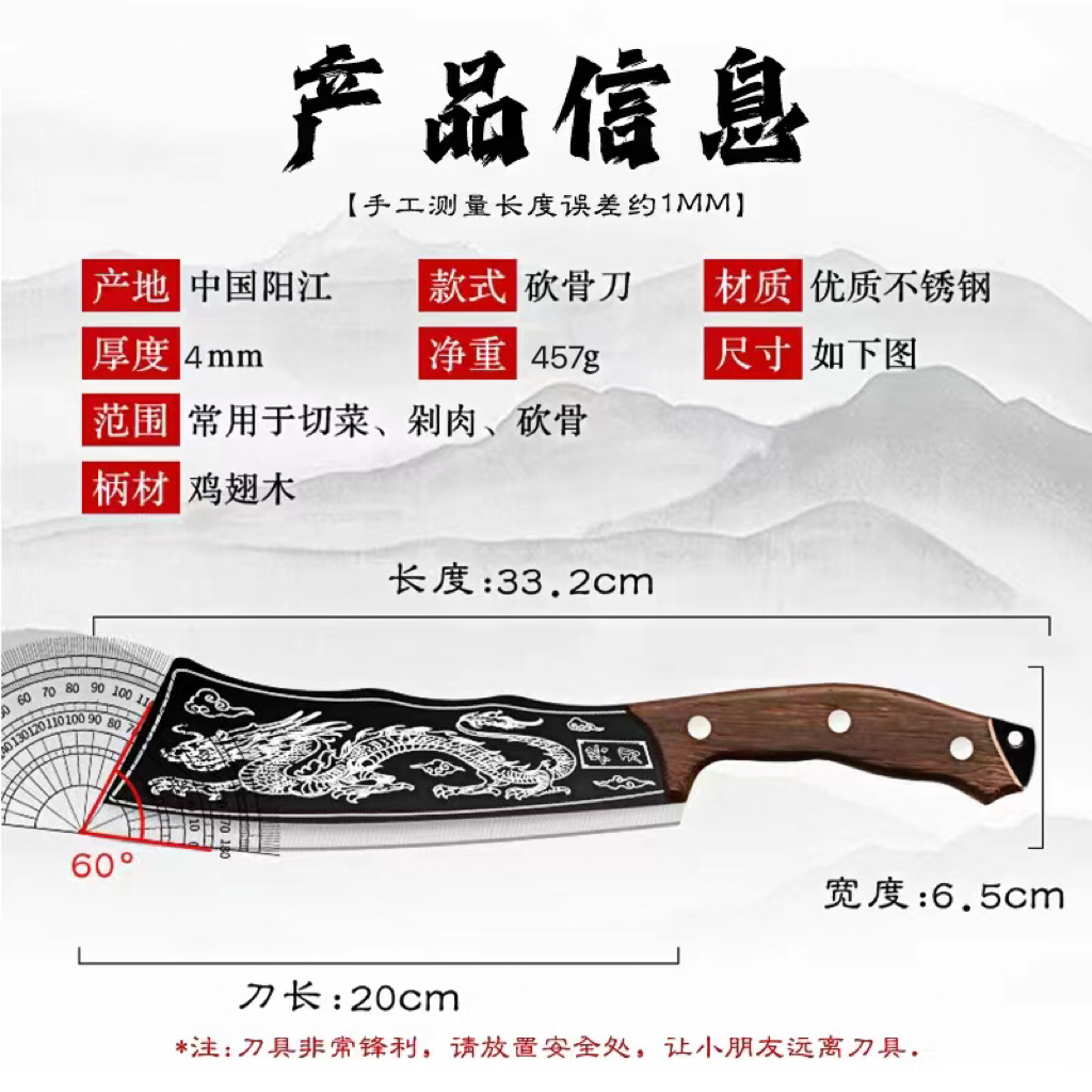 - Specification: S-Tulong Bone Splitting Knife with Sheath