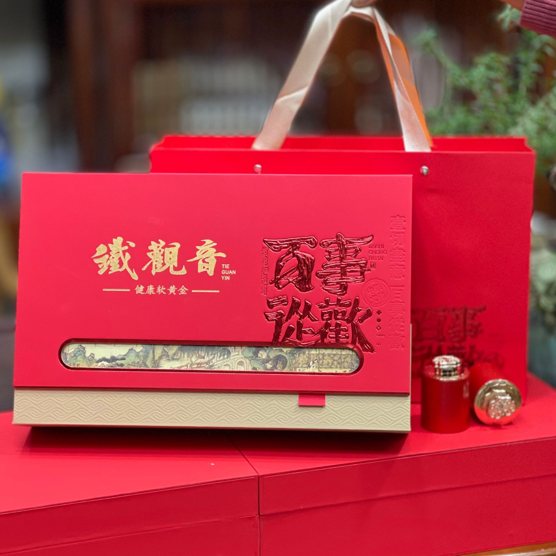- 包裝規格:五福臨門鐵觀音禮盒裝一盒一斤