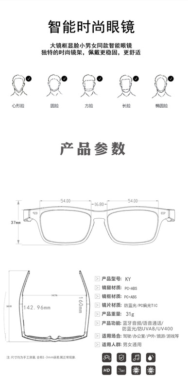 - Packing List: Glasses, Packaging Box, Charging Cable