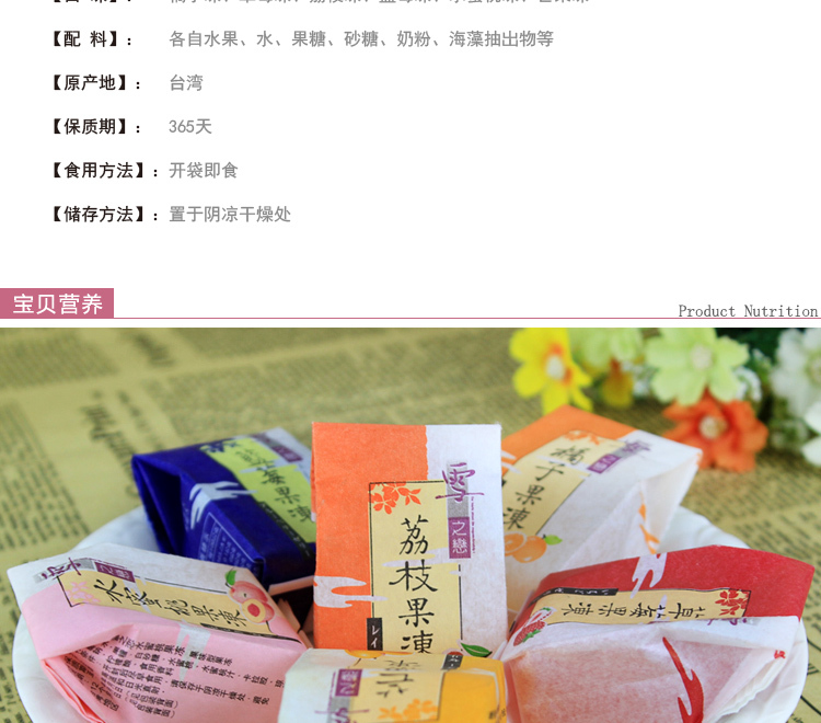 - 原料與配料:各自水果、水、果糖、果汁、海藻抽岀物