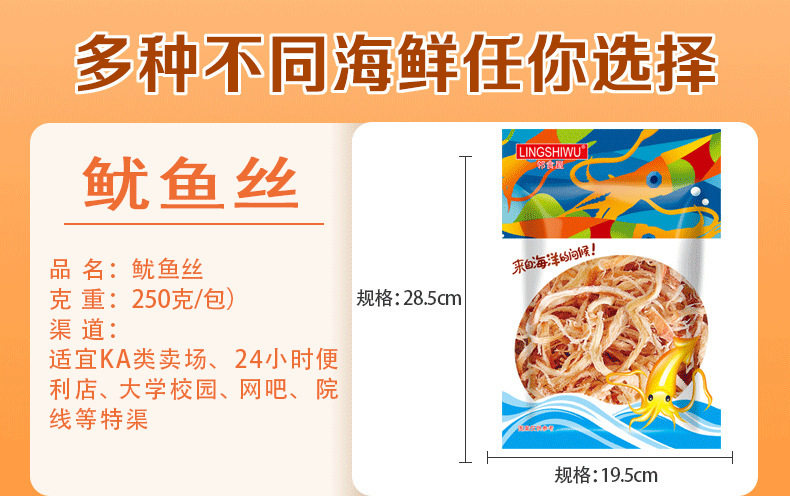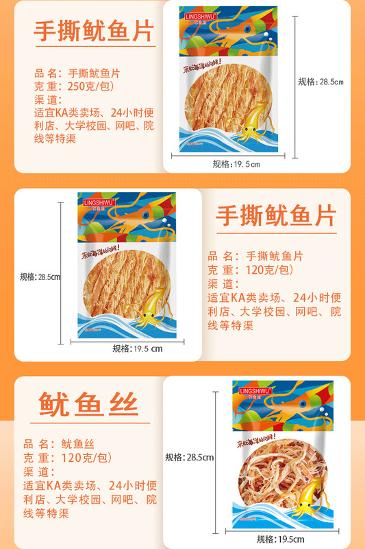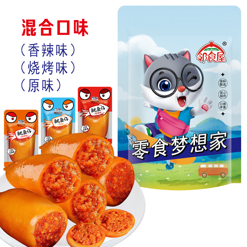 - Packaging specifications: 250g mixed-flavor squid bites