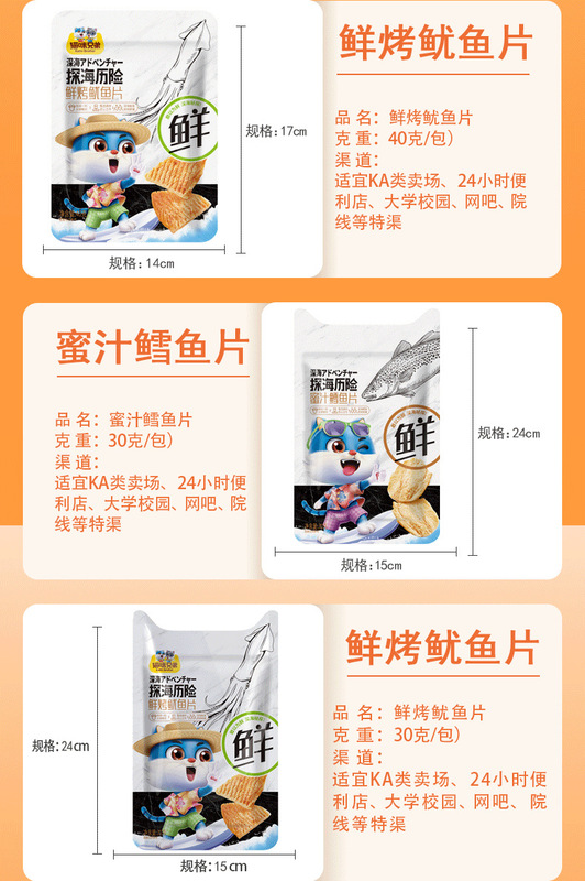 - Packaging specifications: 30g barbecue-flavor squid strips