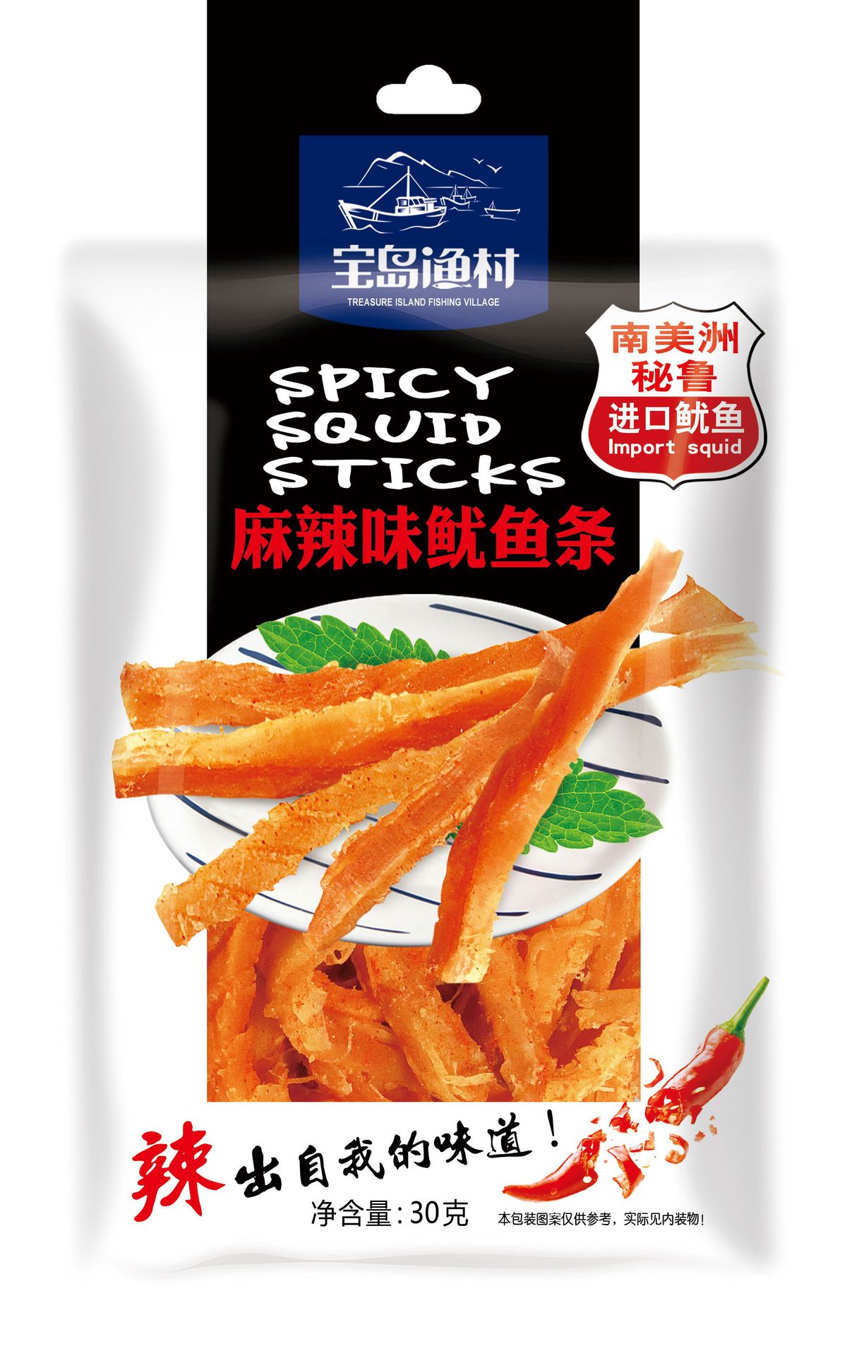 - Packaging specifications: 30g spicy-flavor squid strips