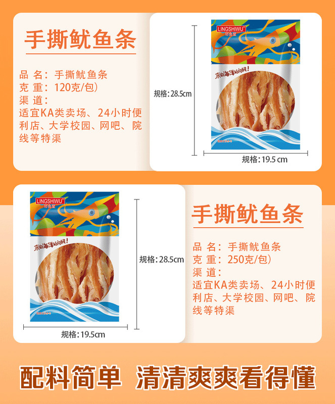- Packaging specifications: 120g squid strips
