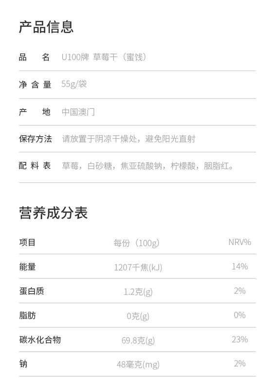- Packaging specification: Dried strawberries (candied fruit) 55g