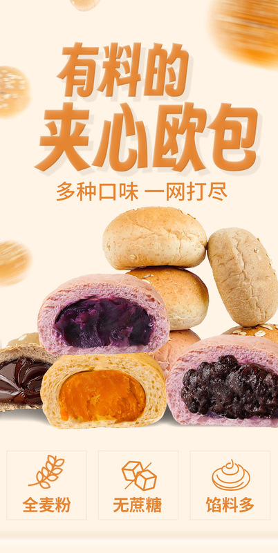 - Packaging specifications: Whole wheat purple potato filled European bread 500g