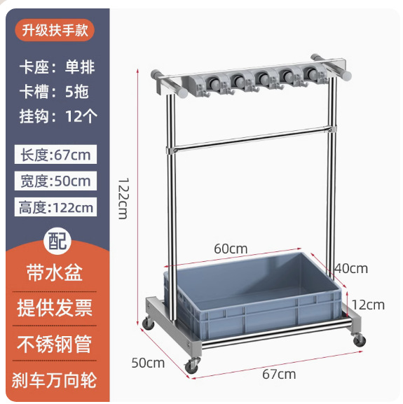 - Specification: 【Stainless Steel Mop Stand】Handle Model 67 Single Row 5 Trays 12 Hooks